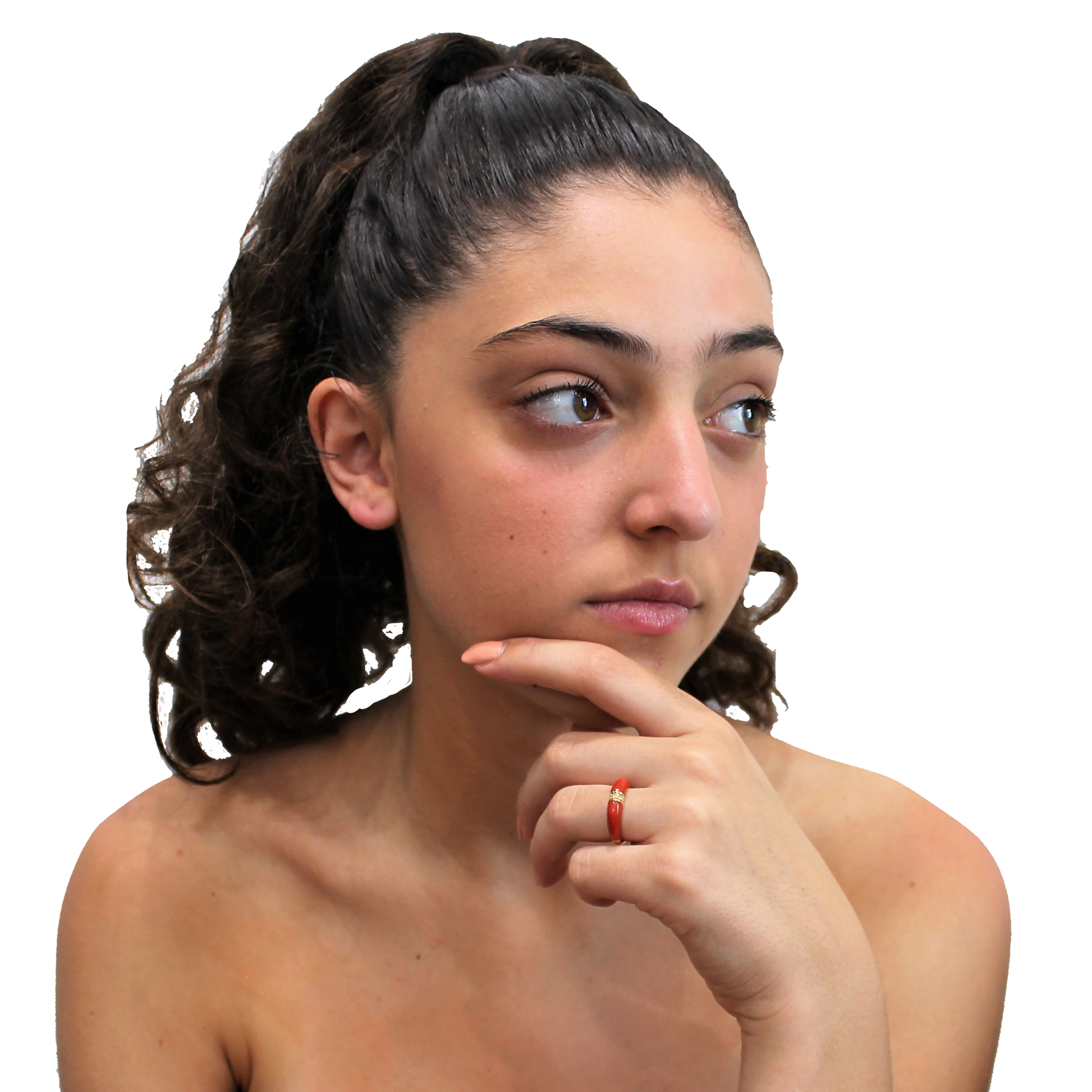 ANELLO FASCETTA ORO 18 CARATI, CORALLO E DIAMANTI