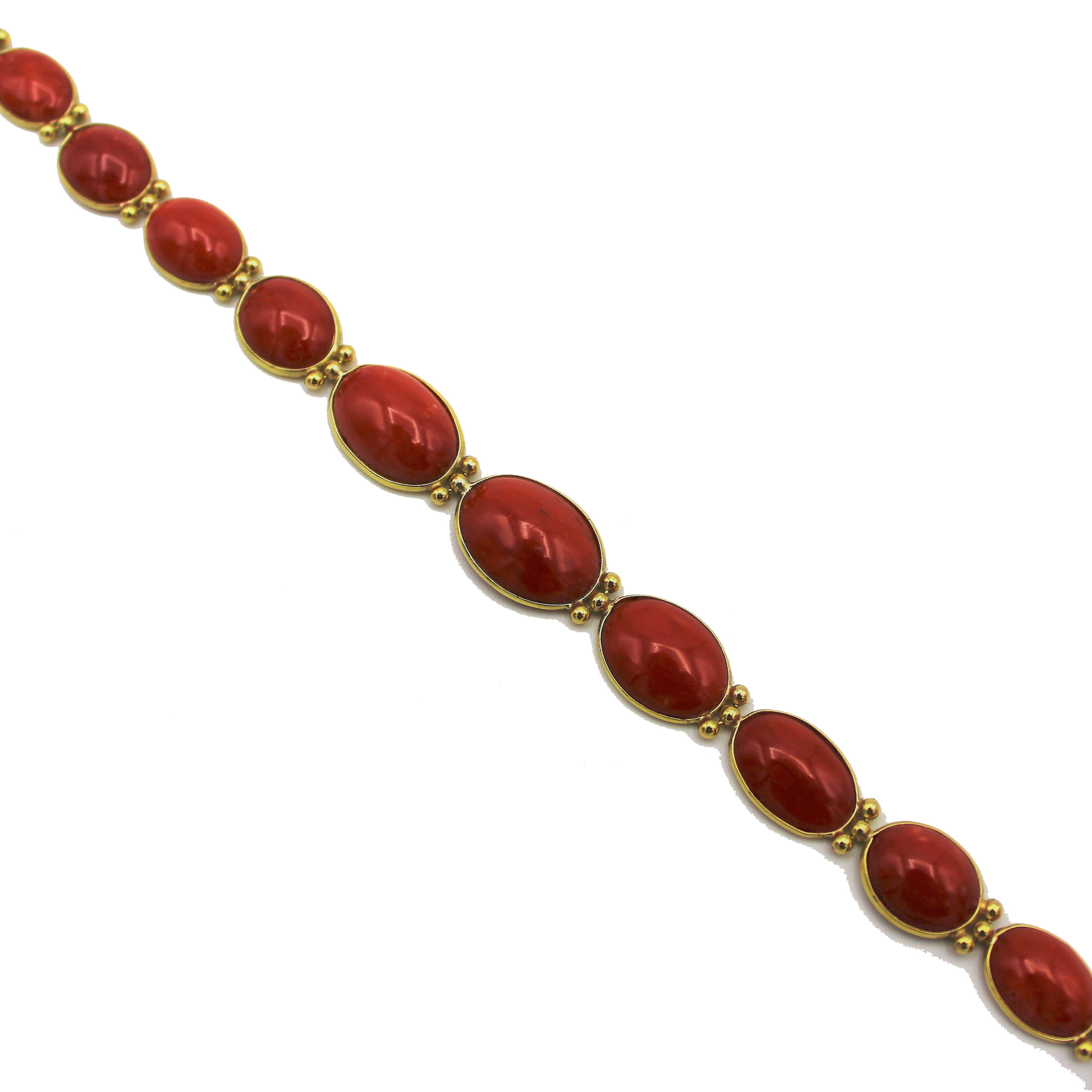 Bracelet in 18 carat yellow gold with ovals in natural red coral