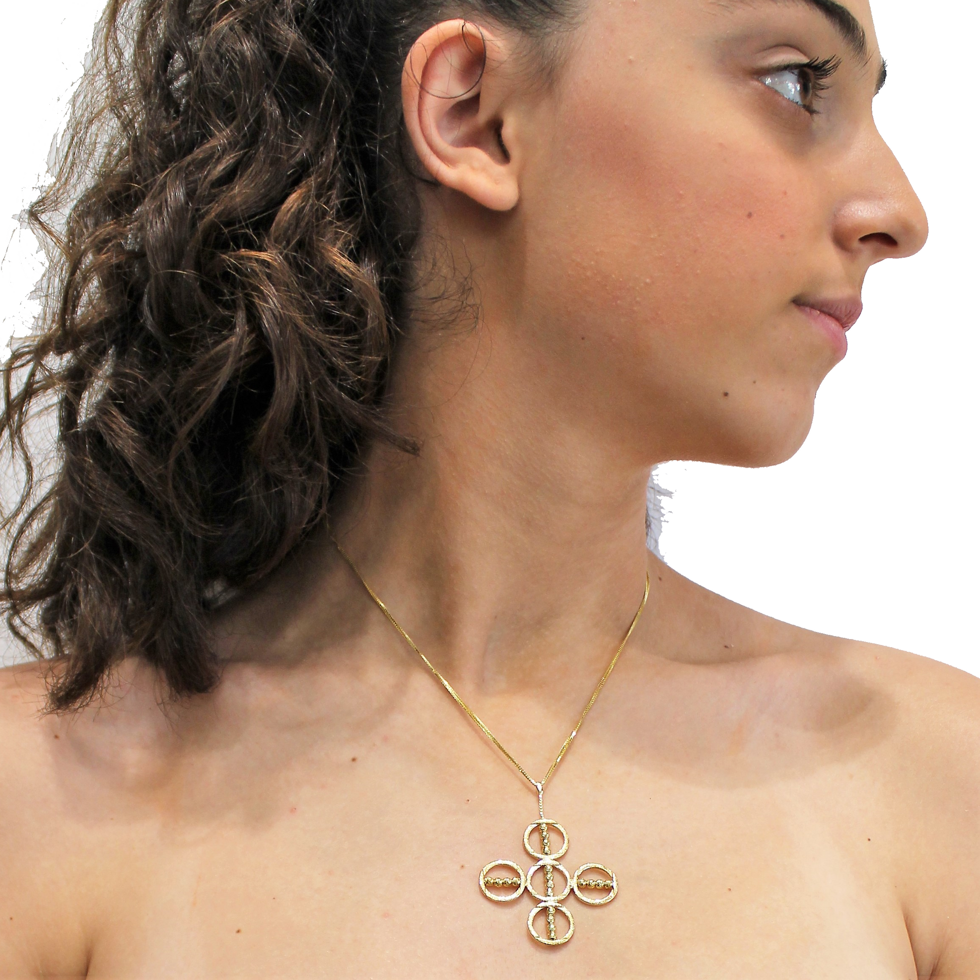 Multi-strands necklace with cross in 18 carat gold diamond cut