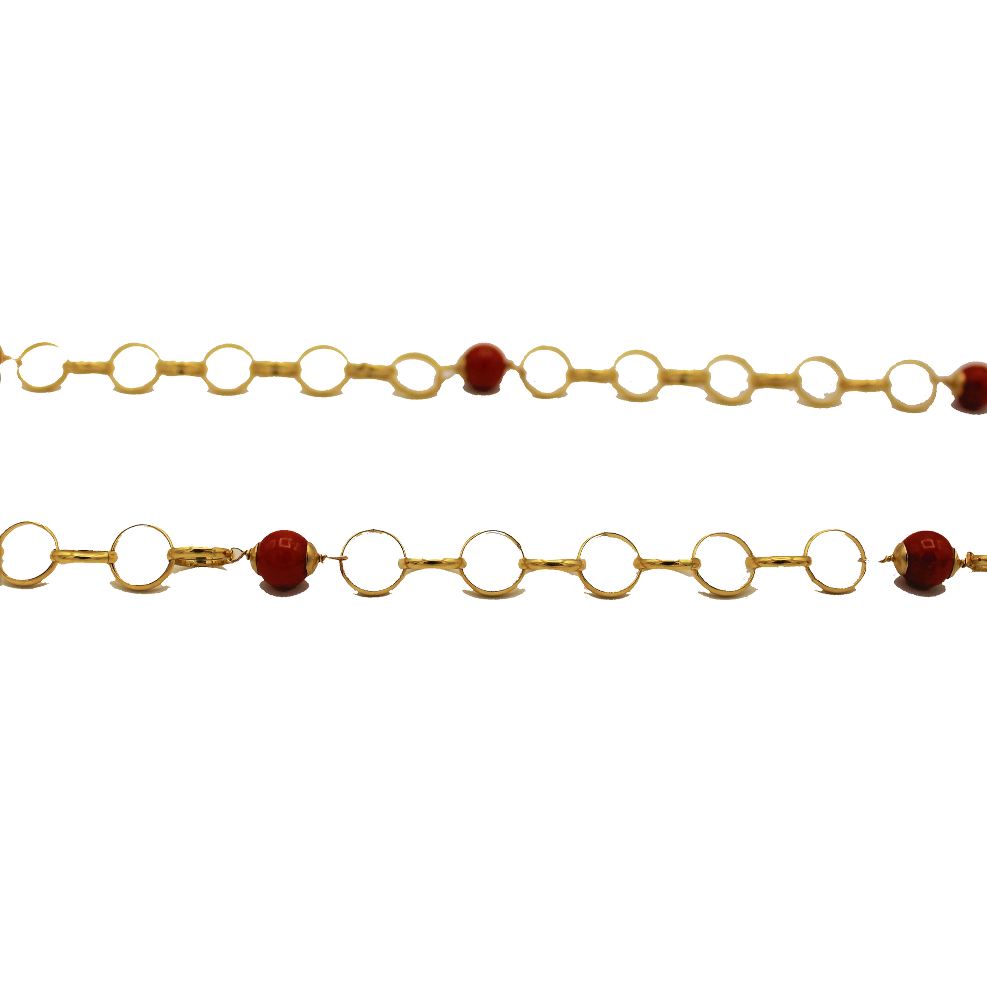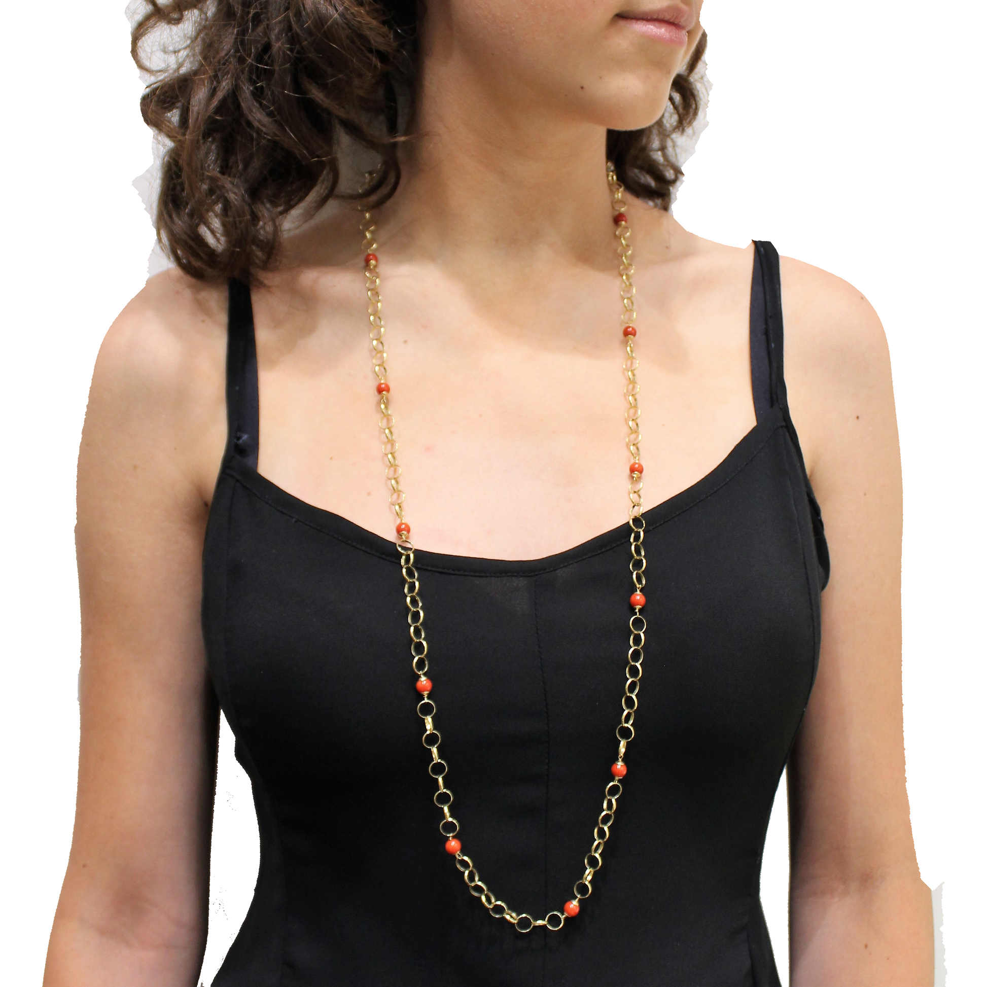CATENA LUNGA ORO 18 CARATI E CORALLO