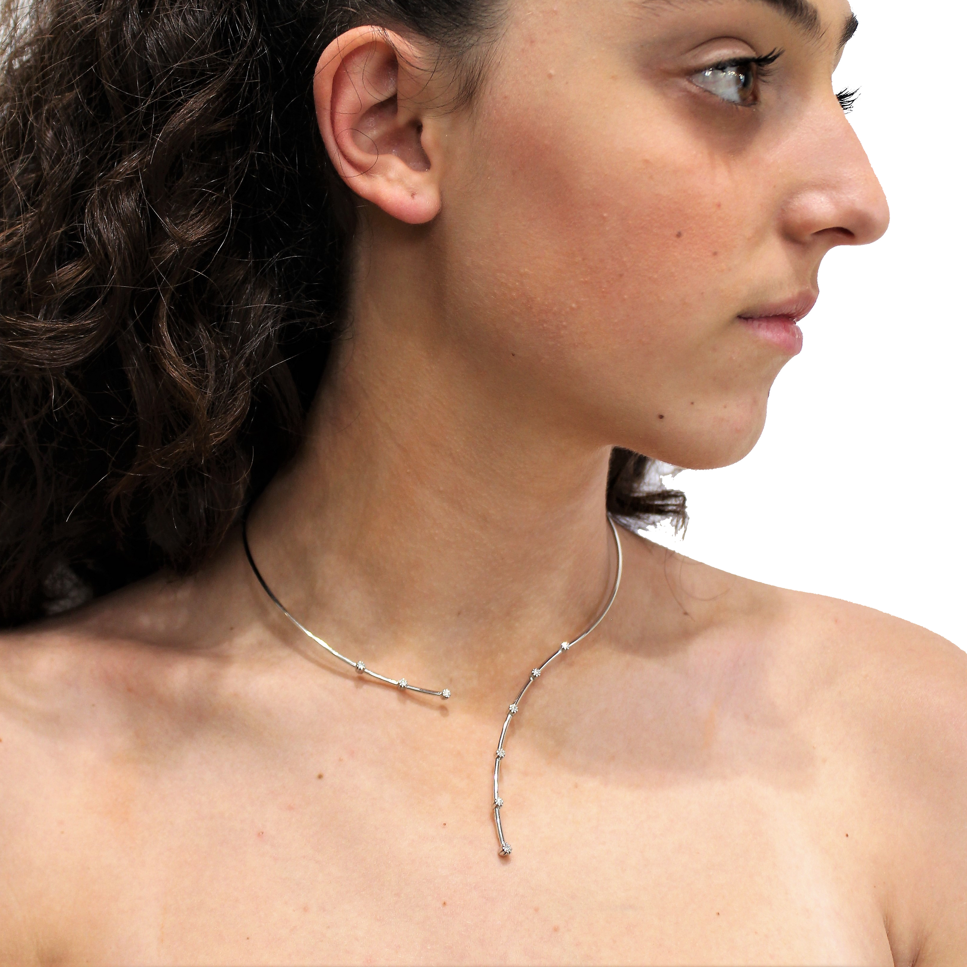 Rigid necklace in 18 carat white gold and diamonds ct 0.29