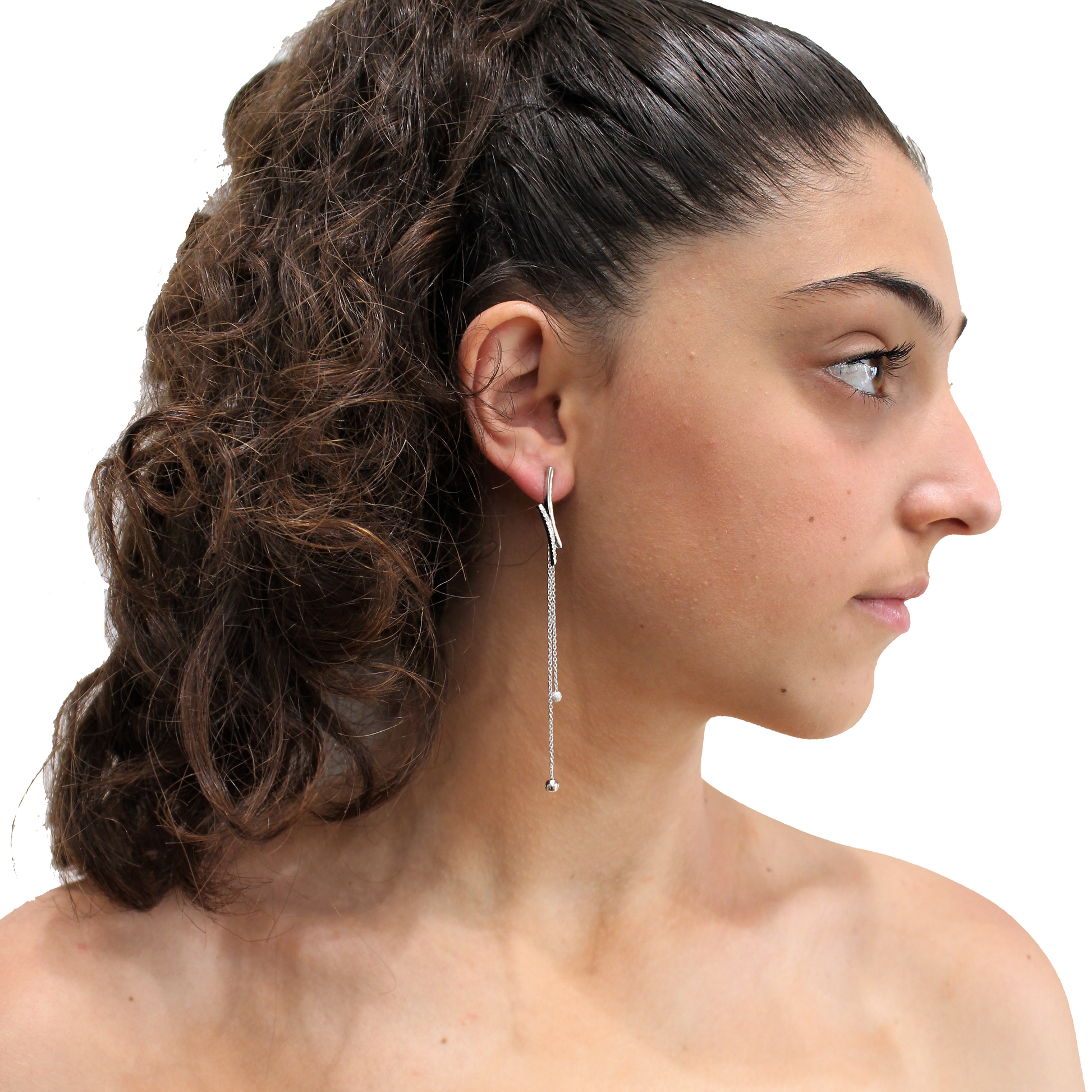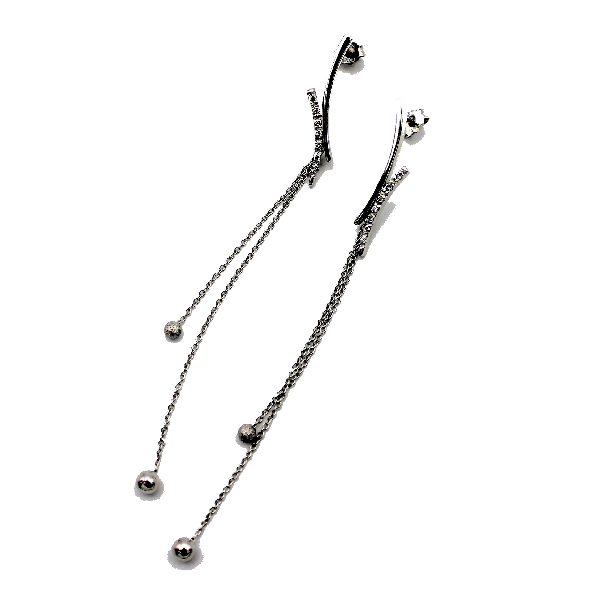 Multistrands pendent earrings in 18 carat white gold and diamonds ct 0,11