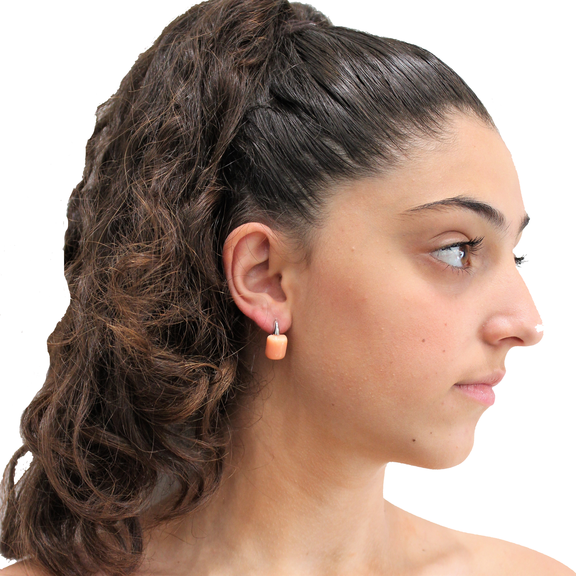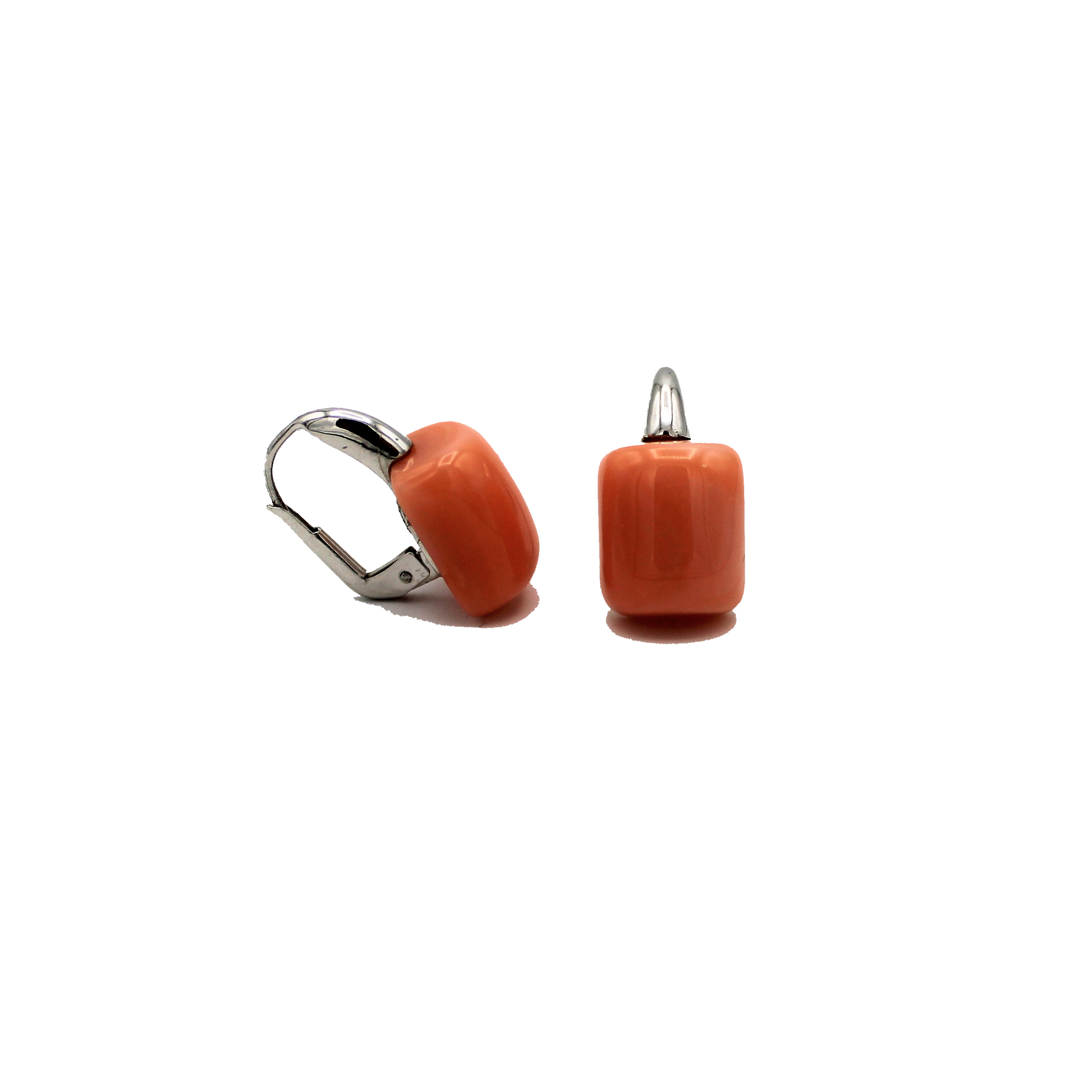 Earrings in 18 carat white gold and natural rectangular pink coral