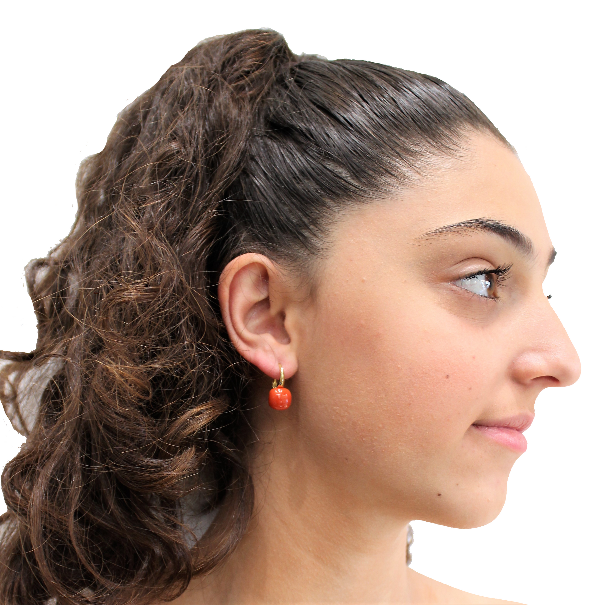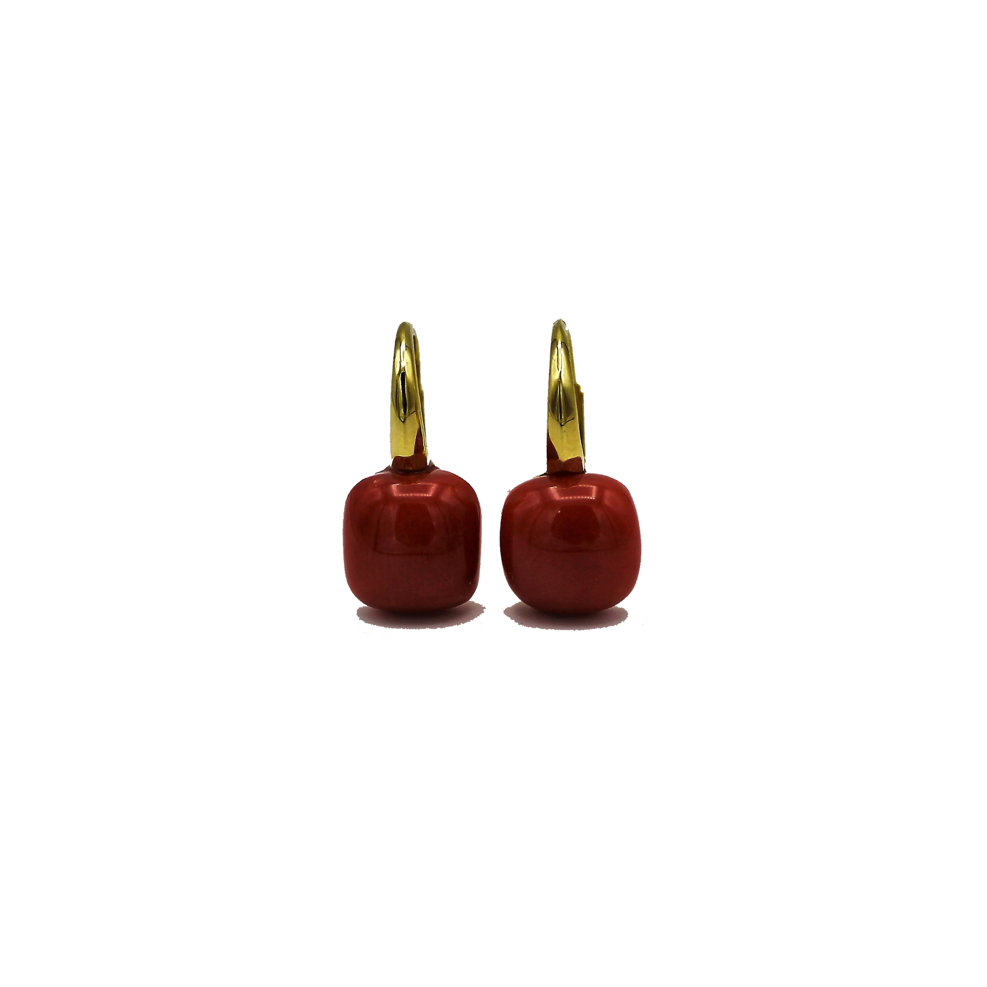 ORECCHINI MONACHELLA QUADRATI ORO 18 CARATI E CORALLO